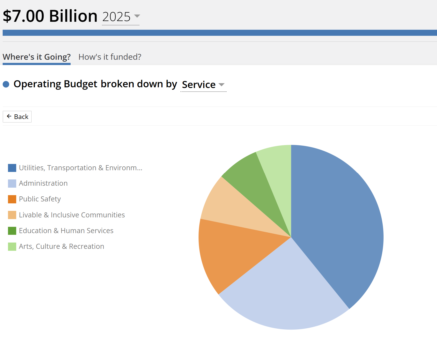 - Utilities, Transportation, & Environment ($2.42 billion) Public Utilities, City Light, Transportation, Sustainability and Environment and more